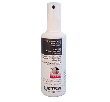 Anti-dim och antidropp spray för orala speglar eller intraorala kameror.