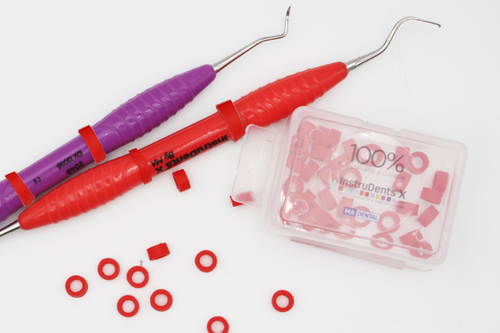 Färgkodade ringar för enkel identifiering och organisation av instrument. Ringarna kan kallsteriliseras eller autoklaveras.