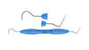 Dubbeländad böjd undersökningssond och WHO fickmätningssond med kula av rostfritt stål och gradering 3,5-5,5-8,5-11,5 mm. Ergonomiskt blått silikonhandtag, Ø 13,5 mm.