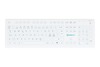 Detta fullstora tangentbord har samma bredd som ett standardtangentbord. Det har en separat sektion för piltangenterna. Tangentbordet har en slät silikonyta som är lätt att rengöra samt en fast upphöjning i bakkant som ger en 6-gradig lutning och en ergonomisk skrivställning. Mekaniska knappar under silikonytan ger en bra skrivkänsla.