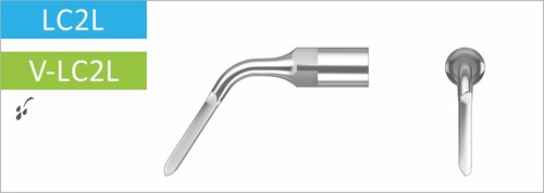 Vänstervinklad tunn periotom som används för att skära av ligamentfibrer runt tänderna
