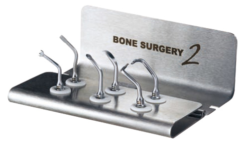 Kit med 6 st spetsar för Benkirurgi (BS1 II, BS2L II, BS2R II, BS4 II, BS5 II och BS6 II) samt rostfritt ställ för spetsarna.