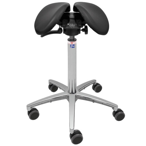 Salli SwingFit sadelstol har en gungmekanism som möjliggör att sätet kan lutas åt alla håll utan en separat justeringsspak. Swing-mekanismen gör det möjligt för användaren att träna under sittandet, vilket bidrar till ökad rörlighet och metabolism i nedre delen av ryggen och hela kroppen aktiveras. Tvådelat säte med justerbar bredd. Stolen anpassas efter dina behov, kontakta oss för färgval och utformning