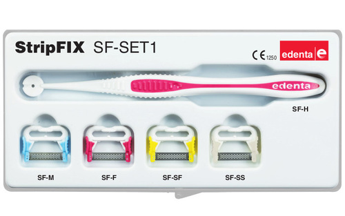 1 st hållare + Putsstrips 1 st SF-M 0,13mm, 1 st SF-F 0,10mm 1 st SF-SF 0,06mm och 1 stk SF-SS 0,04mm