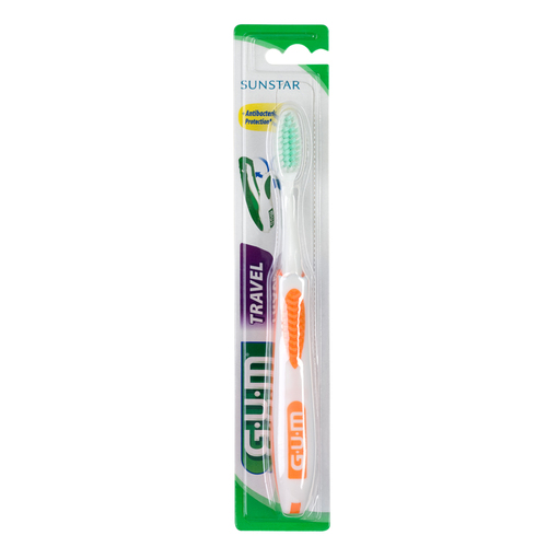 Speciell tandborste för ortodonti-patienter. V-klippt borsthuvud underlättar rengöringen runt och på tandställningen. I reseformat
