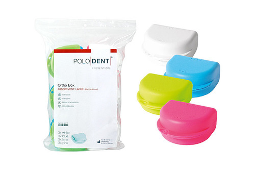 Förvaringsask i plast för bettskenor och ortodontiapparatur med hål i fräscha färger.