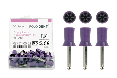 PoloDent prophy cups för engångsbruk, latexfria, RA. Tillgänglig i 3 hårdheter med färgkodning.