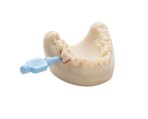 Med TePe tandmodell är det lätt att instruera patienten i olika rengöringstekniker. Modellen visar: trångställning, mesialtippad molar, tandförlust, furkatur grad III, roterad, lingualtippad premolar och erupterande molar.
