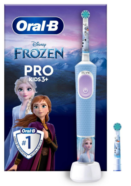 Eltandborste Oral-B Vitality Pro Kids Frozen – hjälper barnet att borsta riktigt rent på 2 minuter. Rolig och effektiv tandvård för barn från 3 år.
