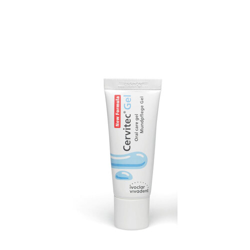 Innehåller 900 ppm fluor, 0,2 % klorhexidin, provitamin D-panthenol samt xylitol. Den optimerade sammansättningen hos Cervitec Gel gör att tänder, tandkött, peri-implantat vävnad och slemhinnor skyddas ännu effektivare. Den förhindrar inflammaion och ger bättre andedräkt. Cervitec Gel kan appliceras på kliniken eller hemma och förstärker effekten av den professionella behandlingen med skyddslackerna Cervitec F eller Cervitec Plus.