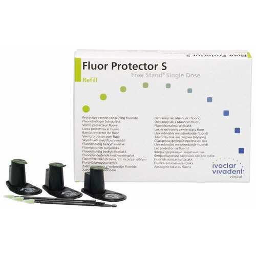 Fluorhaltigt skyddslack som ger utmärkt skydd mot karies och erosion. Fluor Protector S är ett nytt transparent lack med fluorkoncentration i en homogen lösning som kan användas direkt. Behandlingen kan utföras snabbt när det behövs, eftersom emaljen effektivt förses med fluor.