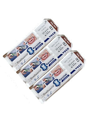 Tandfärgad fluorlack, 5% NaF för behandling av hypersensibla tänder samt försegling av dentintubuli. Lätt att applicera- är ej känsligt för fukt och saliv. Appliceras i tunt lager. Cola/Lime smak.