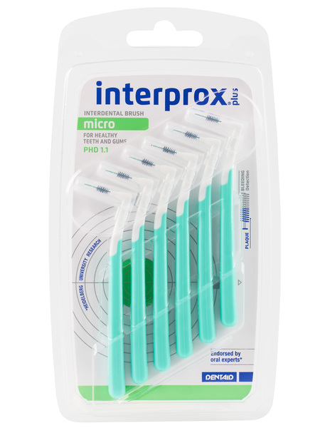 interprox vinkel plus har ett vinklat huvud för att förenkla rengöringen från både insidan och utsidan av tandraden. Varje borste består av ett kort 2-komponents skaft som ger god kontroll och en plasthylsa för att skydda borsten.
