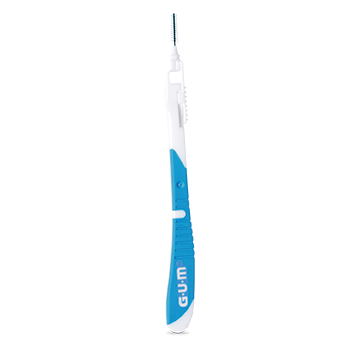 Genialisk mellanrumsborste med vinkelbart koniskt borsthuvud och långt skaft. Kan vinklas i 90° för att enkelt nå främre och bakre approximala utrymmen. Klorhexidinbeklädda borststrån. Färg: Blå. Trådstorlek: 0,5 mm. PHD: 0,9 mm. ISO: 2.