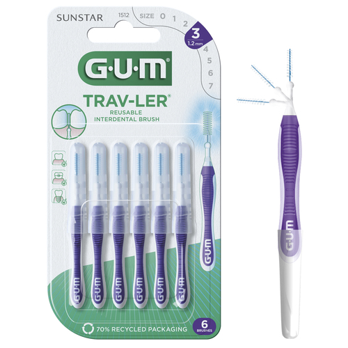 Mellanrumsborte med klorhexidinbehandlade strån, Plastbelagd tråd och flexibel skaft. Tar bort upp till 25% mer plack tack vare den innovativa triangulära formen av borsten.