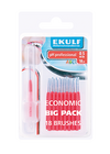 Ekulf pH professional mellanrumstandborste har 400-1000 små, fina och tunna borststrån och en rostfri, plastbelagd ståltråd som skyddar tänderna. Levereras med 18 st borstar i varje förpackning tillsammans med en skyddshylsa samt greppförstorare.