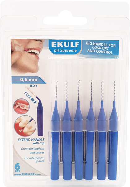 Avsedd för de som behöver lite större grepp på mellanrumstandborstar. Samtliga borstar är cylindriskt utformade och har hög kvalité på borst- och rengöringsförmåga. Med varje förpackning medföljer ett förlängningsskaft som kan användas som skydd för borsten samt för att enklare nå de bakre tänderna. Levereras i en praktisk återförslutningsbar förpackning.