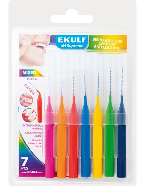 Avsedd för de som behöver lite större grepp på mellanrumstandborstar. Samtliga borstar är cylindriskt utformade och har hög kvalité på borst- och rengöringsförmåga. Med varje förpackning medföljer ett förlängningsskaft som kan användas som skydd för borsten samt för att enklare nå de bakre tänderna. Levereras i en praktisk återförslutningsbar förpackning.