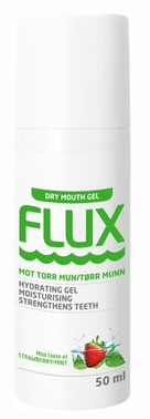 Flux Dry Mouth Gel stimulerar salivproduktionen. Den återfuktar och smörjer slemhinnan och förebygger hål i tänderna då den även innehåller fluor.