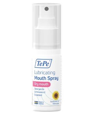 TePe Lubricating Mouth Spray är en munspray med smörjande solrosolja. Oljan ger en behaglig känsla till de som upplever mycket torr mun och har känslig munslemhinna. Det är en mild produkt utan tillsatta smakämnen och kan användas så ofta som det behövs.