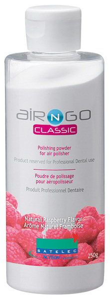 Air-N-Go Classic-pulver på flaska för supragingival rengöring. Med smak av hallon.