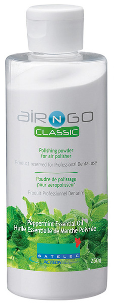 Air-N-Go Classic-pulver på flaska för supragingival rengöring. Med smak av pepparmint.