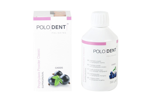 Natriumbikarbonat baserat pulver för luftpolerare. För supragingival borttagning av plack och missfärgningar. Kornstorlek 40 my. Svart vinbär (cassis) smak.