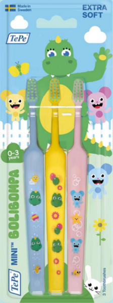 TePe Mini Bolibompa är en hållbar tandborste som kan användas från första tanden upp till 3 års ålder.