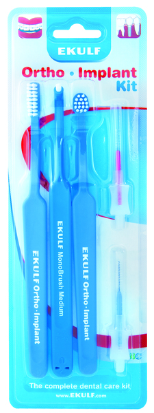 EKULF Ortho Implant Kit är ett komplett rengöringskit för dig med tandställning, protes, broar eller implantat.