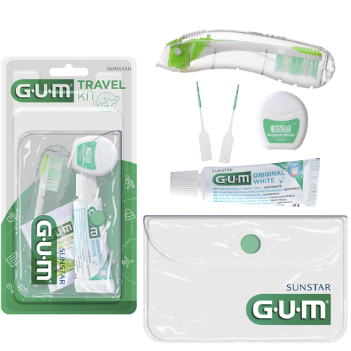 6st förp. innehållande: • GUM Resetandborste• GUM Original White tandkräm 12ml• GUM original White tandtråd• Soft-Picks Regular prov. Allt i ett praktiskt rese-etui. Perfekt till resan!