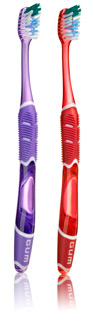 Mjuk tandborste med kupolklippt borsthuvud och QuadGrip (fyrkantsgrepp) för att enkelt uppnå den optimala borstvinkeln.