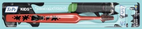 En färgglad hållbar Select tandborste med extra mjuka borststrån för barn från 3 år med motiv av Sommarskuggan och vänner.