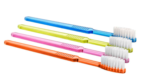 Vår TOP BRUSH PLUS är en engångsborste har ett ovalt borsthuvud för en trevligare tandborstning.