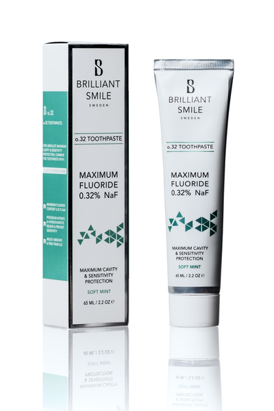Brilliant Smiles o.32 är en munvårdsserie med maximal fluorhalt som är utvecklad i samarbete med fluorforskare och tandläkare. o.32 innehåller maximal fluorhalt (0,32% NAF) och kaliumnitrat som lindrar och förebygger ilningar.