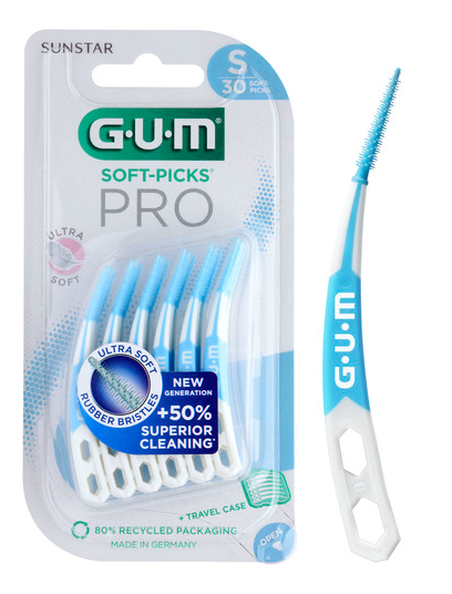 Innovativ mellanrumsborste (tandsticka) med 152 st gummistrån, en vidareutveckling av Soft-Picks Advanced. Ett tätt lager av smidiga supermjuka och böjbara gummistrån av högsta kvalitet som skonsamt och effektivt tar bort plack mellan tänderna. Den böjda formen gör det lätt att komma åt överallt för att rengöra.