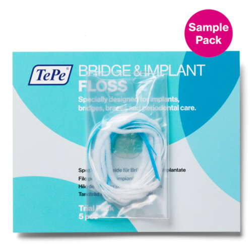 TePe® Bridge & Implant Floss är en tjock, flexibel tandtråd som är speciellt utvecklad för rengöring av implantat, broar, hängslen och större mellanrum. Tandtråden är försedd med hårda ändar för enkel insättning mellan tänderna.