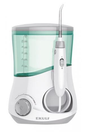 EKULF PowerFlossers vattenstråle pulserar 1400 per minut och masserar tandköttet och ger en ökad cirkulation. Håller ditt tandkött friskt och starkt och är mer skonsam än traditionell tandtråd. Tippen har en 360 graders rotation och strålen gör det enklare att rengöra runt tandställningar, broar, implantat och bryggor. Vattenbehållaren rymmer 600 ml vatten och har en 100 cm lång vattenslang för att man enkelt ska kunna använda den i badrummet. Powerflossern har en automatisk avstängning efter 2 minuter och har minimal ljudnivå.
