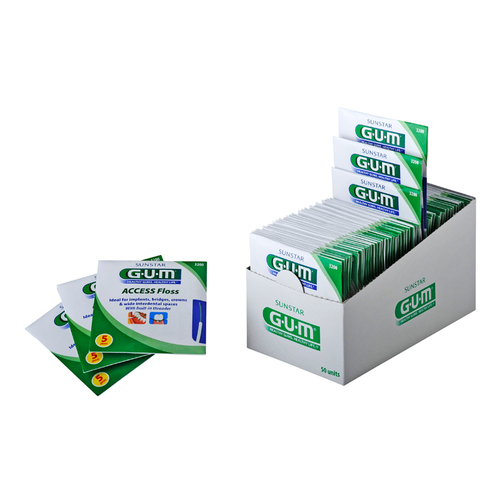 Tandtråd med inbyggd trådförare som gör det enkelt att göra rent under och runt implatat, tandreglering, broar, kronor och i större interdentala mellanrum. Tandtråden expanderar och anpassar sig till olika storlekar av interdentala mellanrum. Specialdesignad förpackning med funktion för att skära tråden i exakta läge.