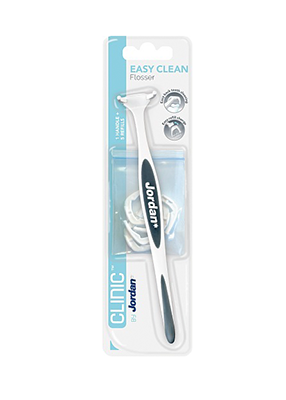 Tandtrådshållare med långt greppvänligt gummibelagt skaft samt lösa utbytbara bygelformade refill huvuden med färdigmonterad lättglidande tandtråd. Tandtrådsbygeln är enkel att byta på skaftet med ett klick.