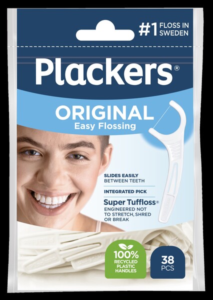 Plackers Original tandtrådsbygel med Super Tuffloss-tråd rengör effektivt plack och matrester mellan tänderna. SUPER TUFFLOSS-tråden är speciellt utformad för att inte gå sönder och är så stark att den kan användas mer än en gång. Tråden glider lätt mellan tänderna och ger en effektiv rengöring.
