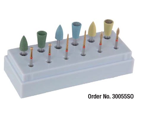Specialanpassat kit med borr och polerare för justering av BruxZir (finjustering av kontaktpunkter etc.)6 st DiaCut diamant roterande instrument och 6 CeraGloss diamantpolerare för justering av fullzirkonia. DiaCut fin slipdiamant (röd ring) används till justering av ocklusala kontaktpunkter. Poleringen kompletteras med hjälp av CeraGloss polerare. Använd kylspray vid polering.