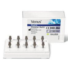 Rosa flamformade silikonpolerare med mikrofina diamantkorn för förpolering av alla kompositrestaurationer.