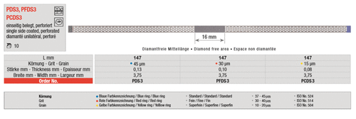 10 st, enkelsidiga, 147mm Tjocklek 0,13mm. Diamantfri del 16mm.