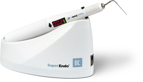 Enhet för vertikal rotfyllning av den apikala delen av rotkanalen med fyra förinställda temperaturnivåer. Önskad temperatur uppnås inom 10 sekunder. Hexagonalt handtag för ergonomiskt grepp. Det är enkelt att byta pluggers eftersom anslutningen är oktagon.