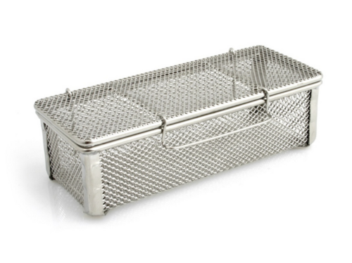 Liten finmaskig korg med lock.