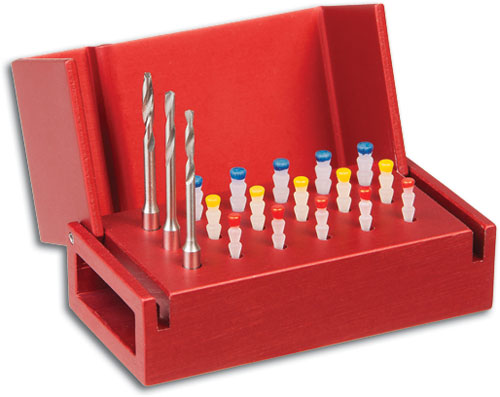 Innehåll: 5 stift/färg röd 1 mm, gul 1,25 mm, blå 1,5 mm, 1 borr/färg röd, gul, blå samt instruktioner.