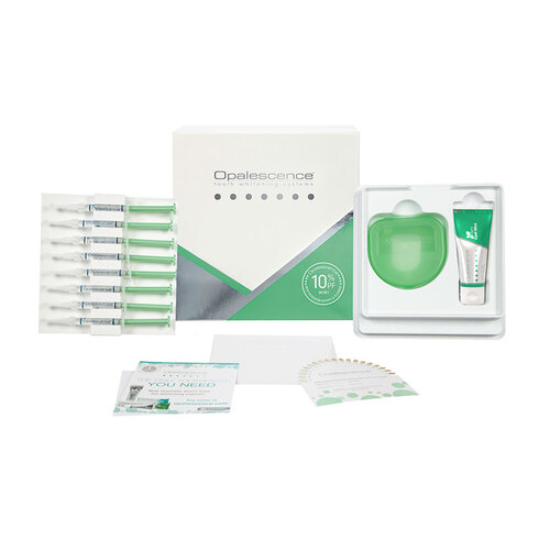 8 sprutor x 1,2 ml mint, 30 ml Opalescence tandkräm, 1 st förvaringsask, 1 st färgguide