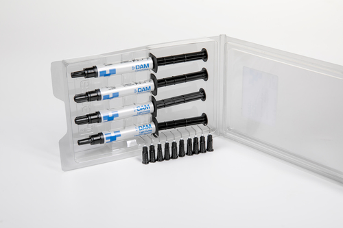 I-DAM är en lätt härdande flytande kofferdam som sätts som barriär för isolering av mjukvävnaden kring tänderna och ersättning för gummiduken för att skydda tandköttsvävnaden i de fall det finns risk för irritation vid kontakt med produkter som används i kliniska förfaranden, t.ex. tandblekning med väteperoxid. Produkten är tillräckligt viskös och gör det enkelt att applicera och hålla kontroll på den plats som ska skyddas. Blå färg för att skapa kontrast till tandköttsvävnaden och tänderna och på så sätt underlätta lokaliseringen.