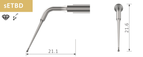 Ultraljudsspets designad för att lokalisera och avlägsna kalcifieringar i rotkanaler. Den diamantbelagda kulformen möjliggör effektiv och skonsam behandling av förkalkade områden, vilket underlättar åtkomst och rengöring av rotkanalerna. Spetsen är kompatibel med de flesta ultraljudssystem och är ett värdefullt verktyg för endodontiska ingrepp där kalcifieringar försvårar behandlingen.