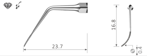Vänstervinklad, används för furkationer, interdental och smala områden